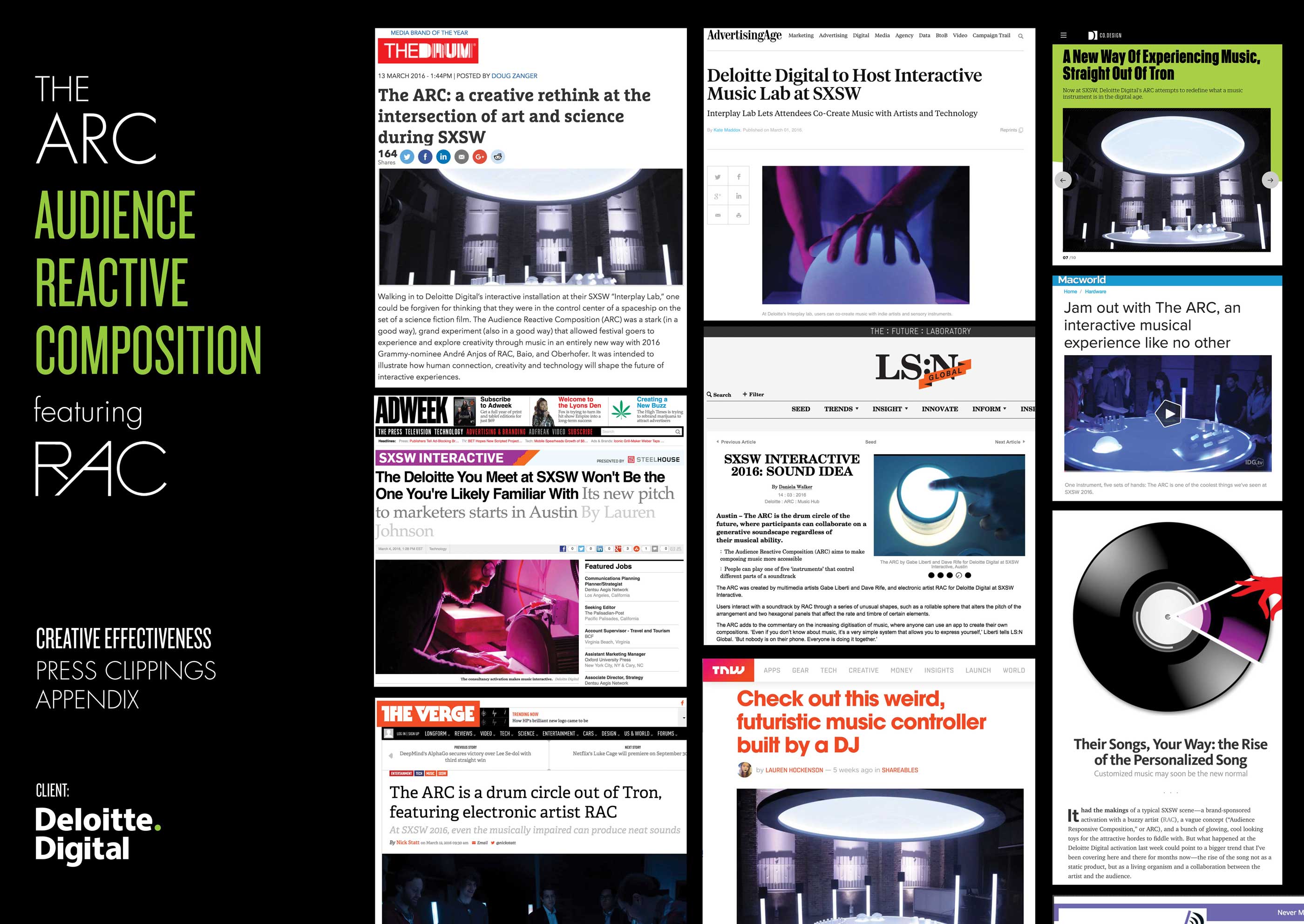 The ARC attracted over 6,000 SXSW attendees, earned 450 million media impressions, and was named the Best Brand Experience at SXSW Interactive by CNBC. It received additional critical acclaim in industry publications, Forbes, The Drum, Ad Age, and Ad Week with the headline “The Deloitte You Meet at SXSW Won’t Be the One You’re Likely Familiar with.”
